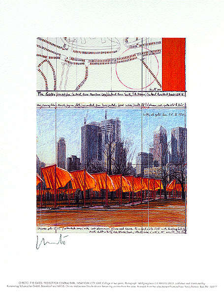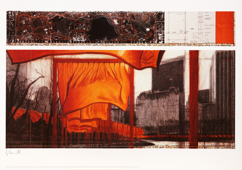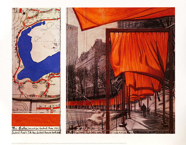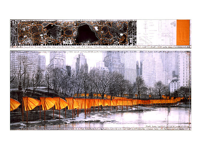 Vom 12. bis 27. Februar 2005 standen auf den Wegen des Central Parks in New York City insgesamt 7503 Metalltore, von denen safrangelbe Stoffbahnen herabhingen. Insgesamt wurden knapp über 100.000 m² Stoff speziell produziert und verwendet. Die Tore waren jeweils fünf Meter hoch und verteilten sich auf eine Gesamtstrecke von 37 Kilometern. Es gibt Parallelen in Farbe und zur Anordnung der Torii im Fushimi-Inari-Taisha-Schrein in Japan.